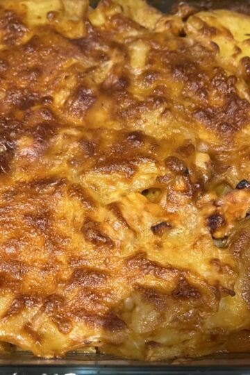 Manchmal braucht es einfach ein Gericht, das alle abholt: cremig, viel Käse, schön würzig – aber trotzdem halbwegs „vernünftig“ von den Nährwerten. Genau da kommt dieser Kartoffel-Hähnchen-Auflauf ins Spiel. Dünn geschnittene Kartoffeln, angebratene Zwiebeln, zartes Hähnchen, eine schnelle Tomaten-Milch-Sahne-Soße und oben drauf eine Schicht geschmolzener Käse. Minimaler Aufwand, maximaler Comfort – perfekt für den Feierabend […]
