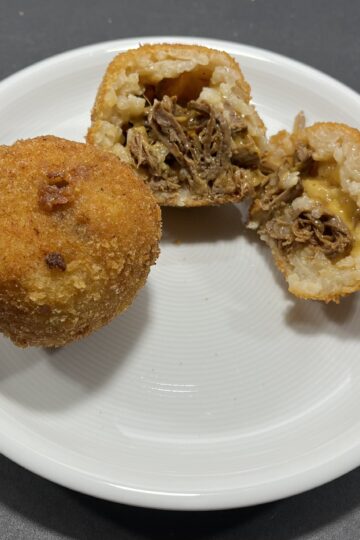 Arancini sind diese italienischen Reiskugeln, die außen knuspern, innen cremig sind und beim Reinbeißen so ein „okay wow“-Moment auslösen. Klassisch kommen die oft mit Ragù rein, aber ganz ehrlich: Pulled Pork + Cheddar ist einfach Endgegner. Das cremige Risotto, das würzige Fleisch, der schmelzende Käse… das ist wirklich das höchste der Gefühle.