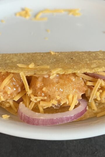 Knusprige Garnelen, einmal kurz in eine cremig-süß-scharfe Sauce geworfen und dann ab in die knusprige Taco-Schale. Das ist genau die Art Essen, die man eigentlich “nur mal probieren” wollte und dann sind plötzlich alle Tacos weg.