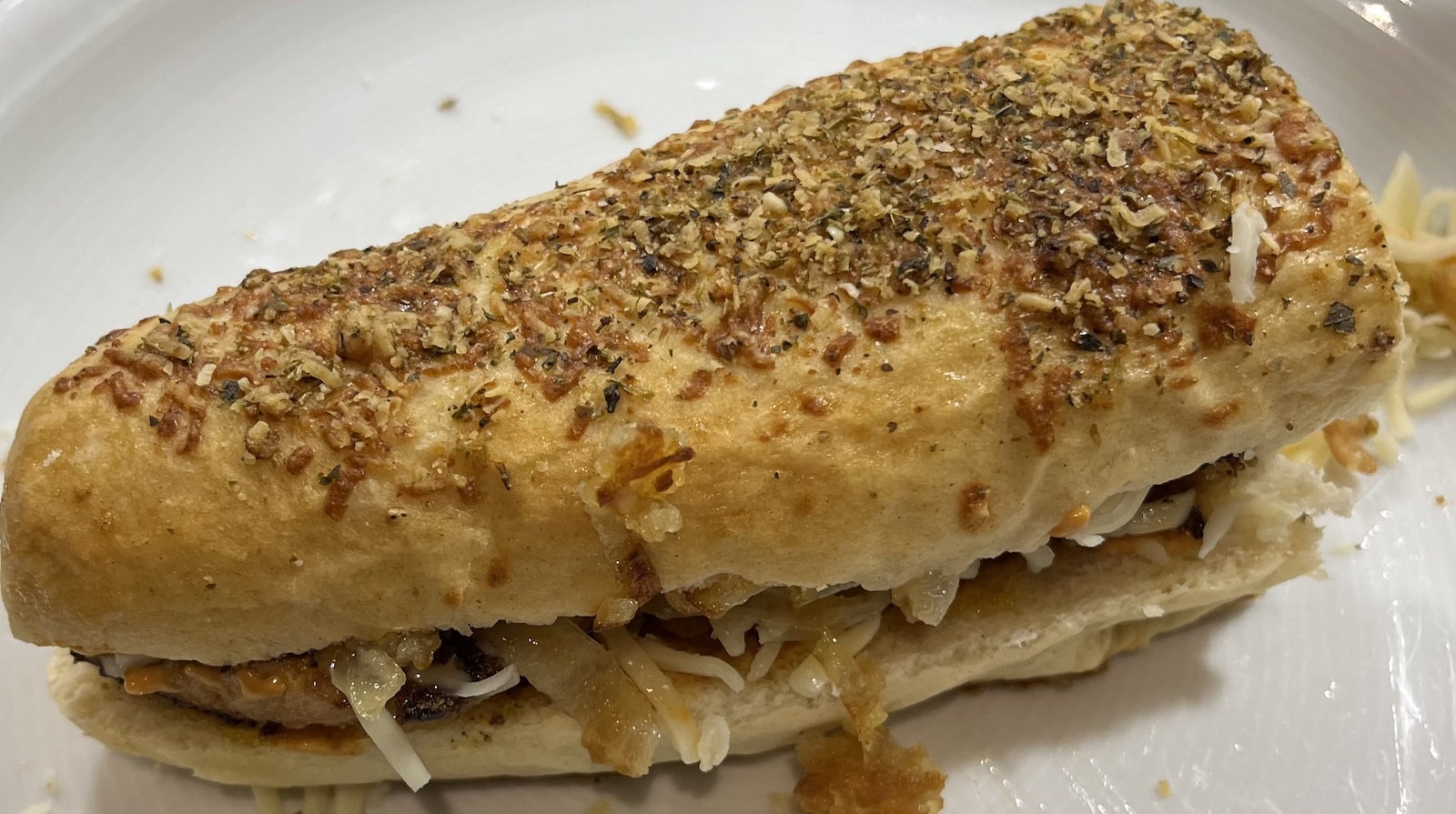 Nimm dir ein selbstgemachtes Parmesan-Oregano Sub und dann machen wir daraus ein richtig freches Sandwich, das nach Takeaway schmeckt, aber halt… besser.