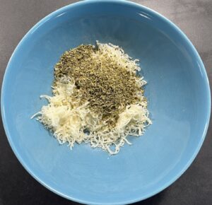 2. Parmesan + Oregano in einer kleinen Schüssel mischen.
