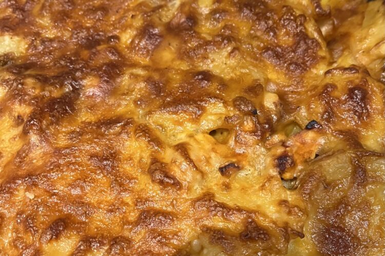 Den Auflauf kurz stehen lassen, damit er sich setzen kann, und anschließend auf Teller verteilen. Optional mit frischer Petersilie oder Schnittlauch bestreuen.