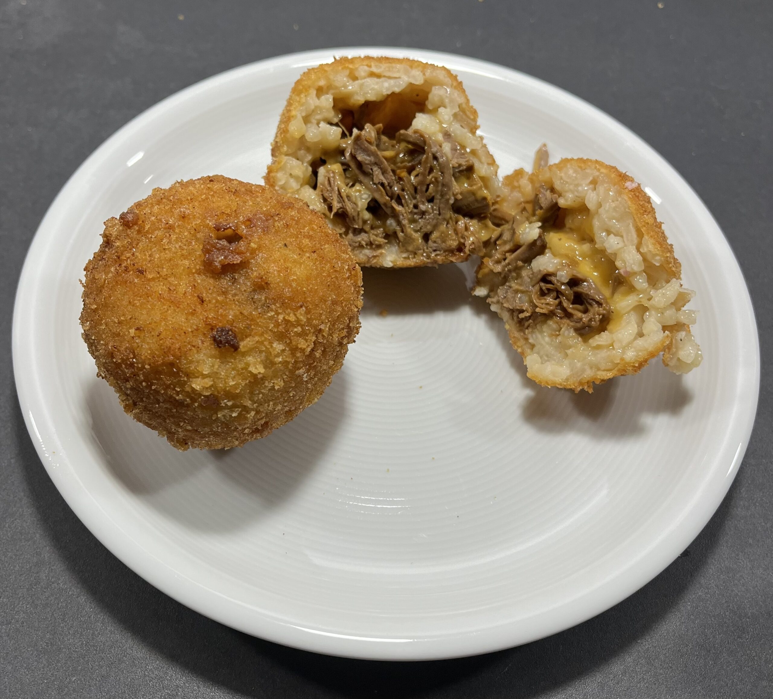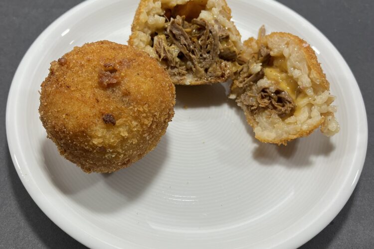 Pulled-Pork Arancini mit Cheddar