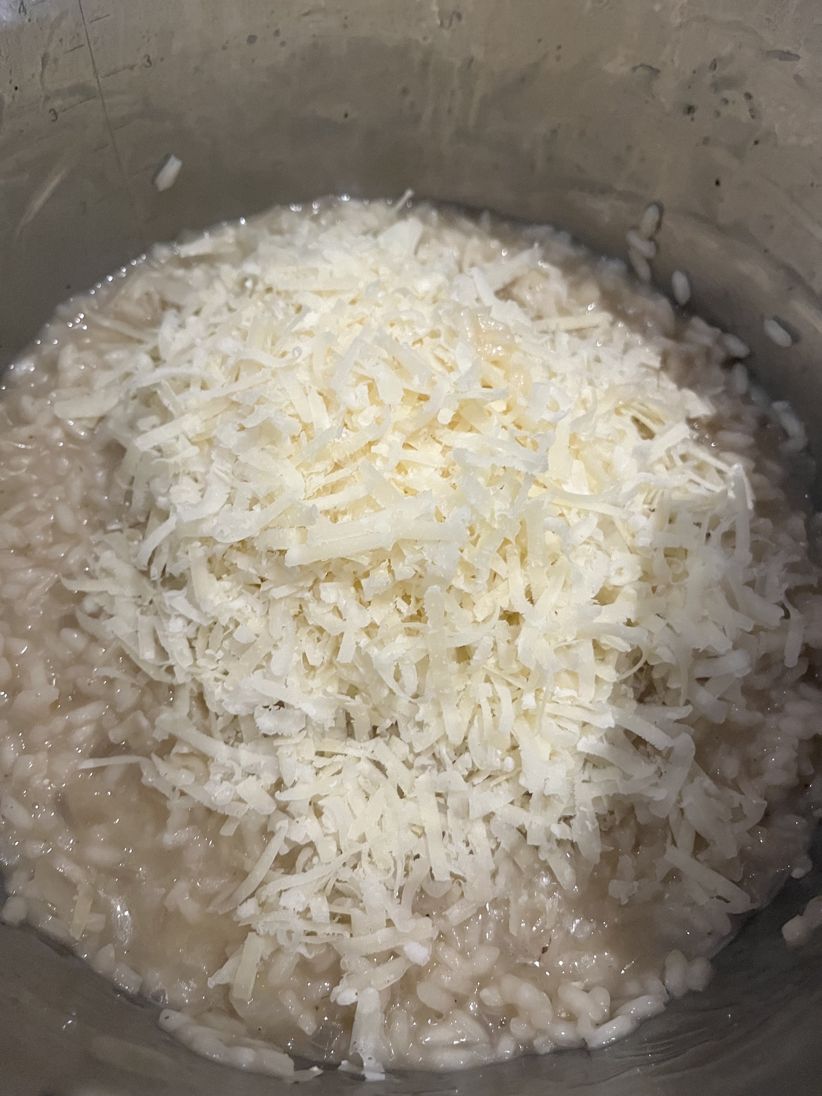 - Fond schrittweise zugeben, immer nur so viel, dass der Reis gerade eben bedeckt ist. Rühren, einkochen lassen, wieder Fond dazu.Das dauert ungefähr 12 Minuten, bis der Reis weich und schön cremig ist.Parmesan unterrühren, mit Salz und Pfeffer abschmecken.