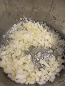 - Butter in einem Topf schmelzen und Schalotten + Knoblauch 2 Minuten glasig andünsten.