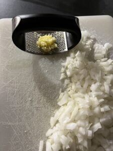 - Parmesan reiben. Schalotten und Knoblauch fein schneiden.