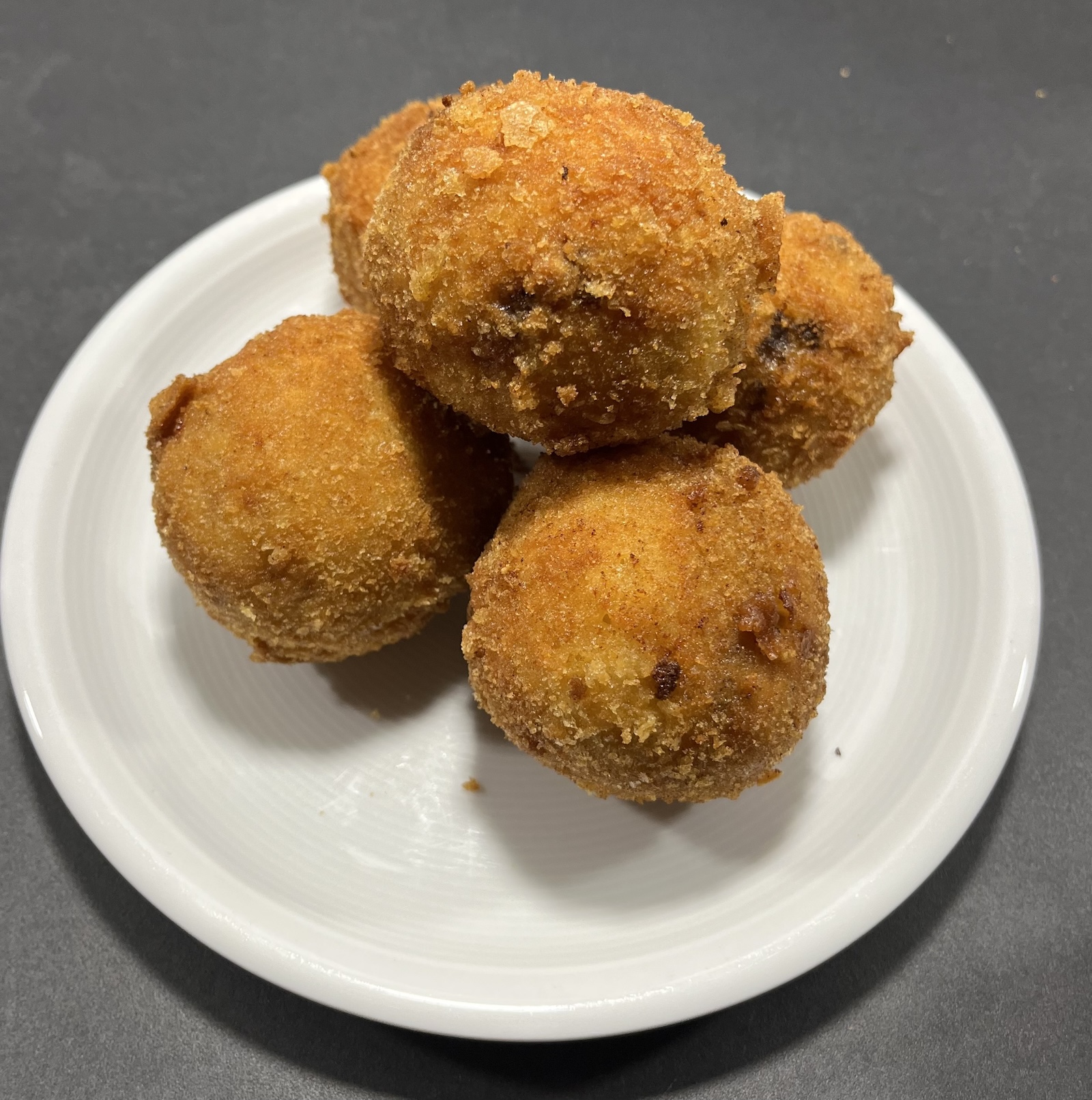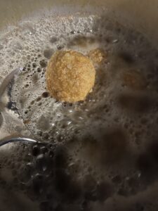 - Drei Schüsseln:– Mehl– Eier verquirlt (mit Salz, Pfeffer, optional Paprikapulver)– PaniermehlKugeln erst in Mehl wälzen, dann durchs Ei ziehen, dann ins Paniermehl.Pro-Tipp: Das kannst du super vorbereiten. Die unpanierten Reiskugeln einfach abgedeckt über Nacht in den Kühlschrank, und am nächsten Tag panieren und frittieren.