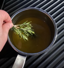 - In der Zwischenzeit kann die Butter in einem Topf geschmolzen werden. Die oben aufgeführten Zutaten hinzugeben und gut vermengen. Anschließend die Butter indirekt auf dem Grill warm halten.